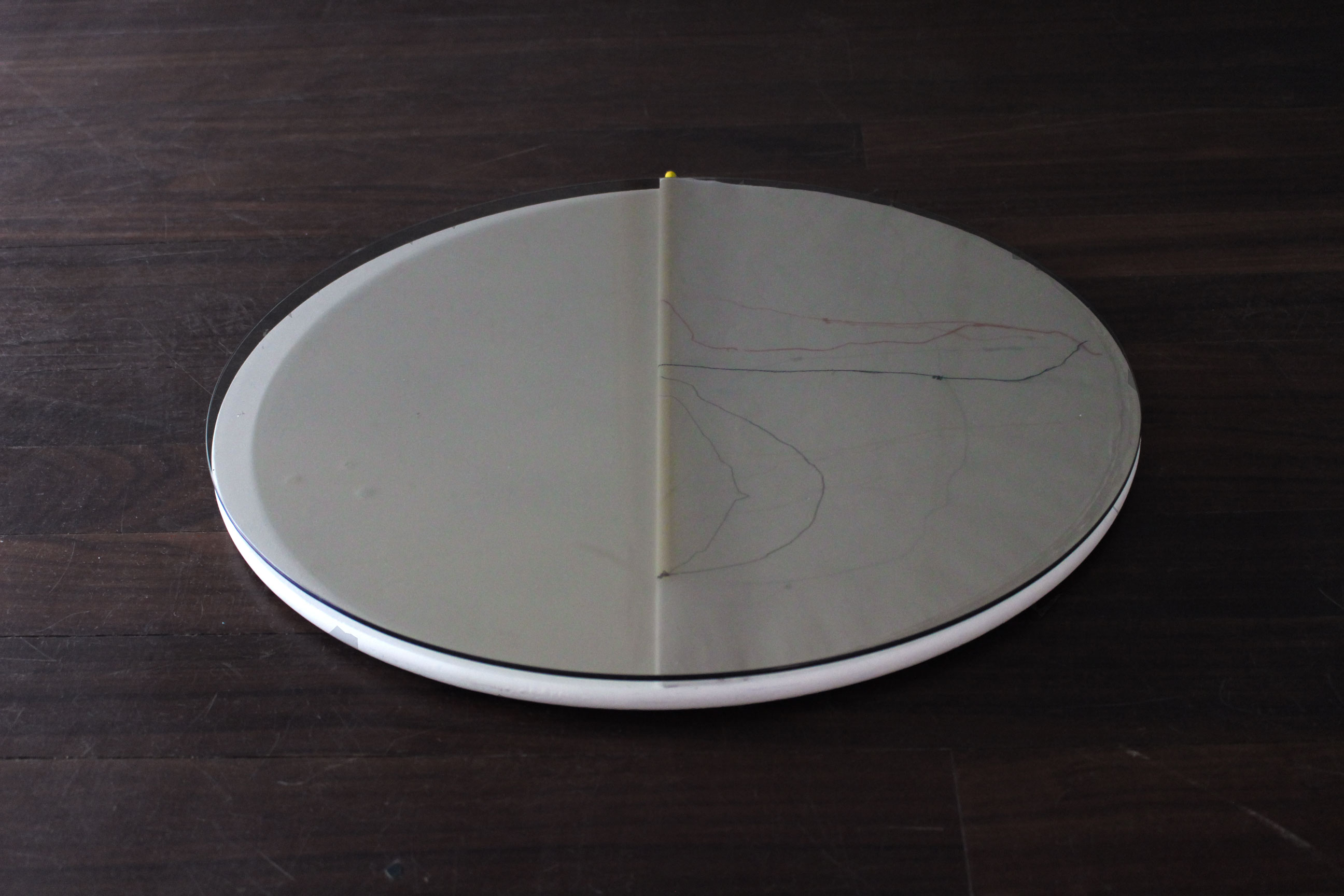 White board, glass, circular tracing paper; yellow stick section 60 cm in diameter.